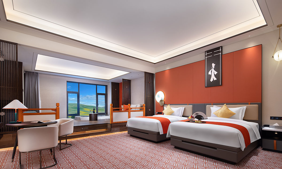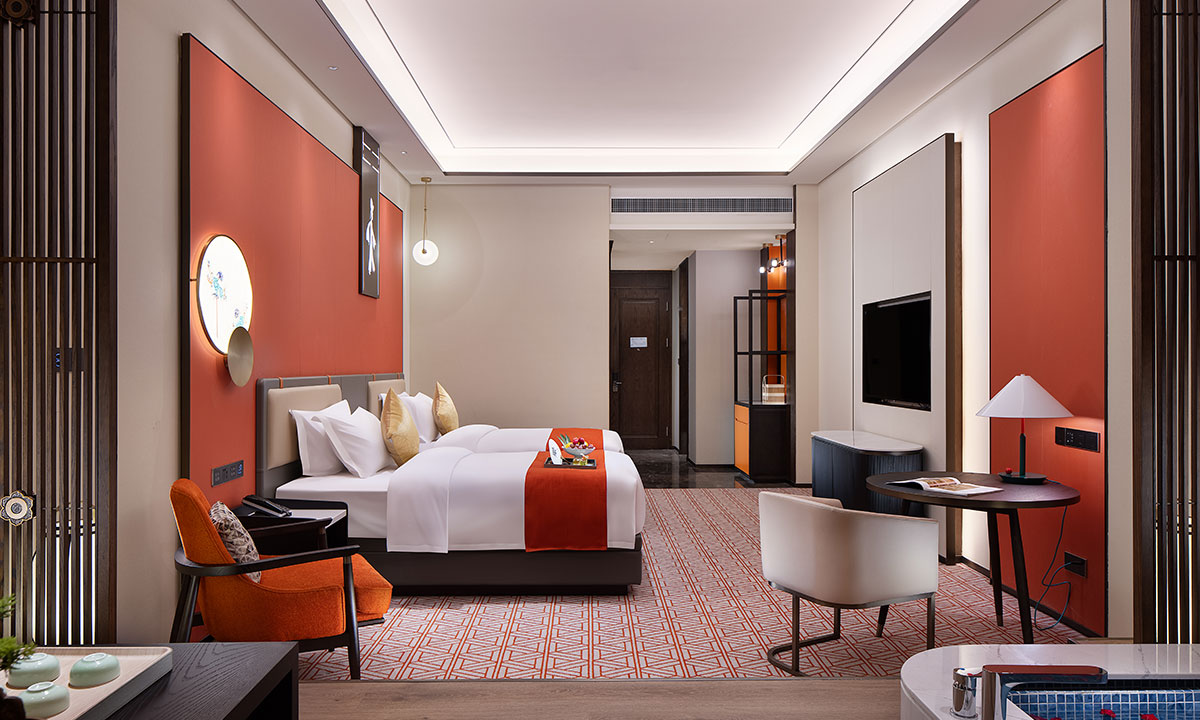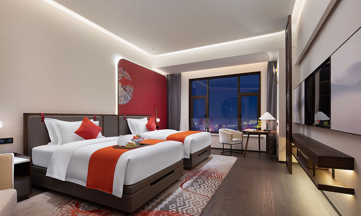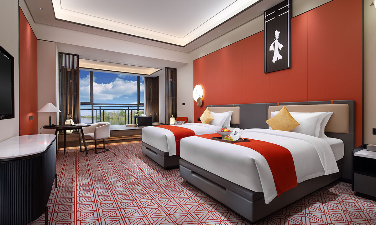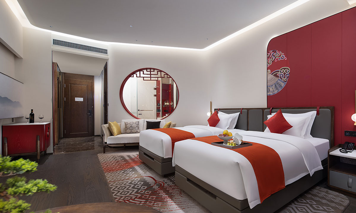 京剧艺术客房,撷取舞台的浓墨重彩,运用中国红,将传统美学与时尚风潮跨界融合,尽情演绎中国风。